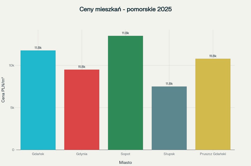 Porównanie średnich cen mieszkań za m² w największych miastach województwa pomorskiego w 2025 roku